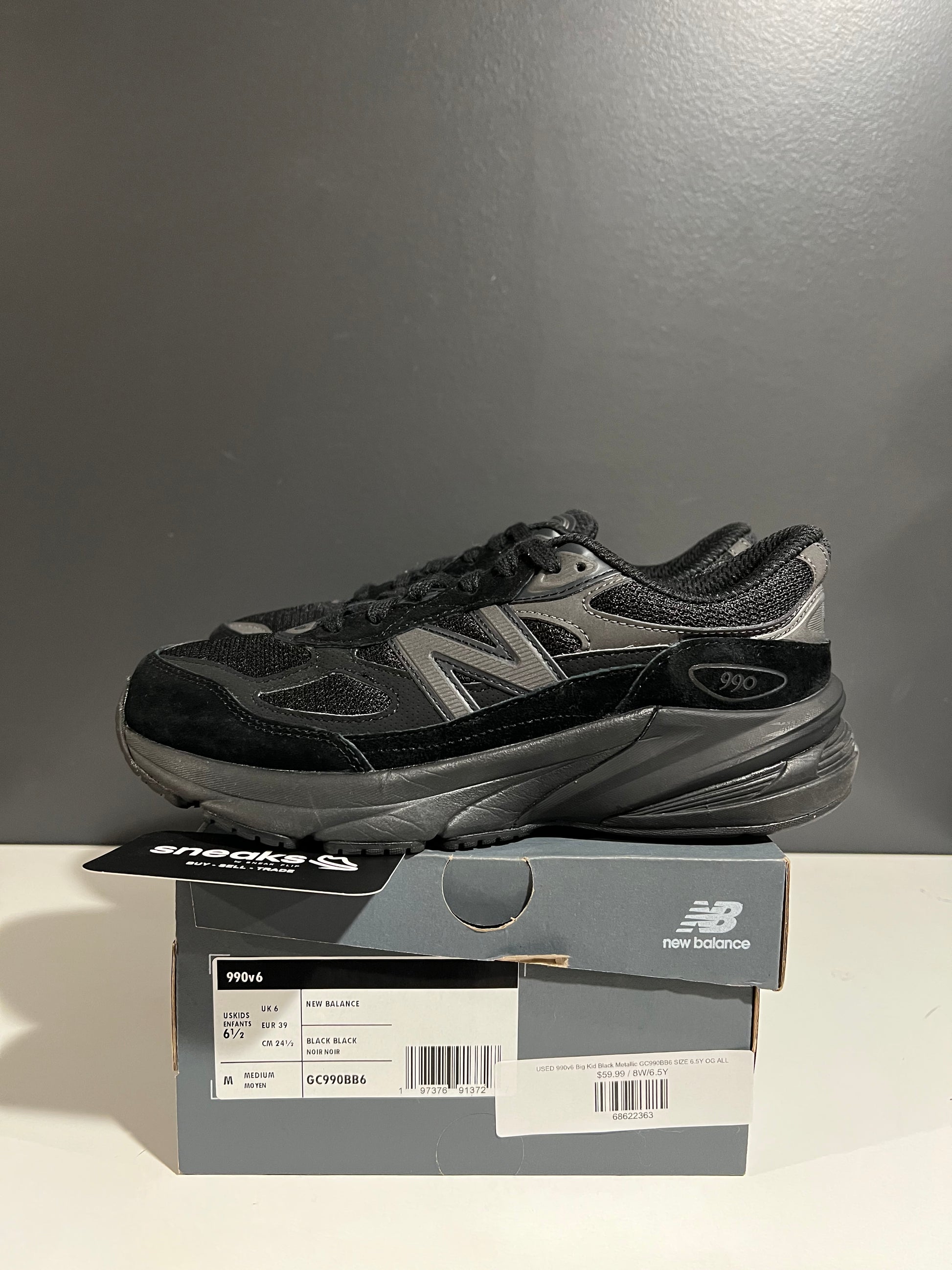 USED New Balance 990v6 Big Kid Black Metallic GC990BB6 SIZE 6.5Y OG ALL