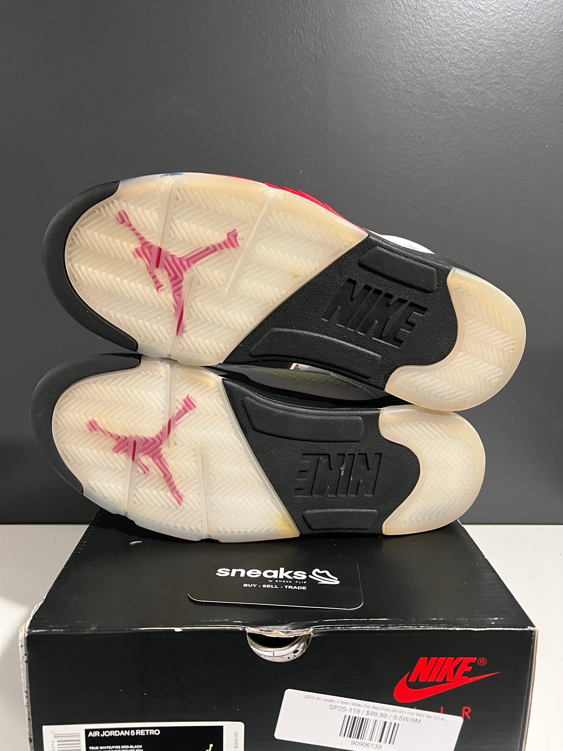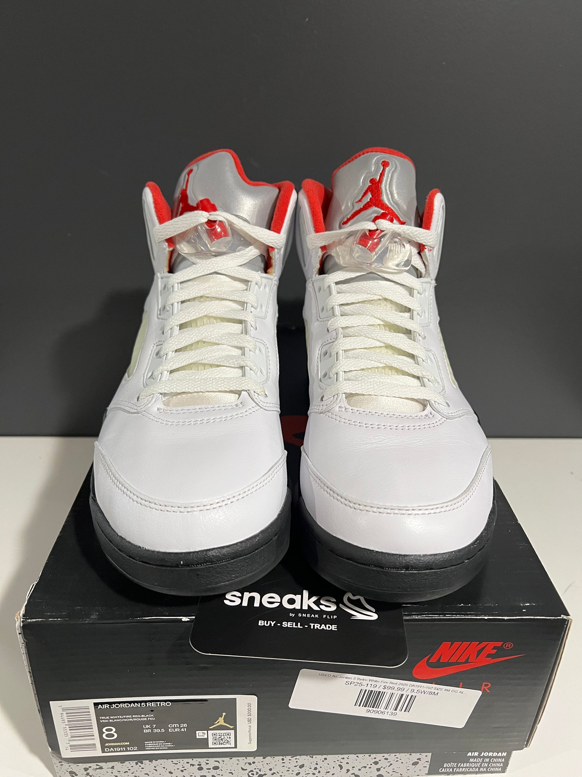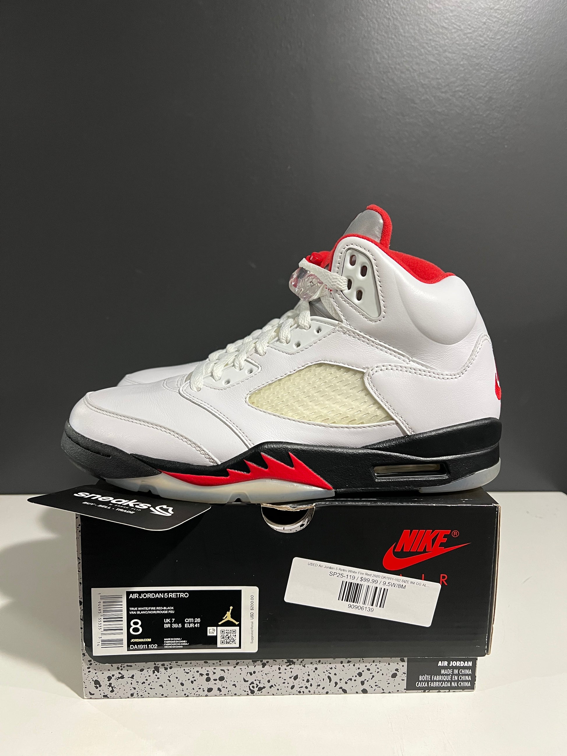 USED Air Jordan 5 Retro White Fire Red 2020