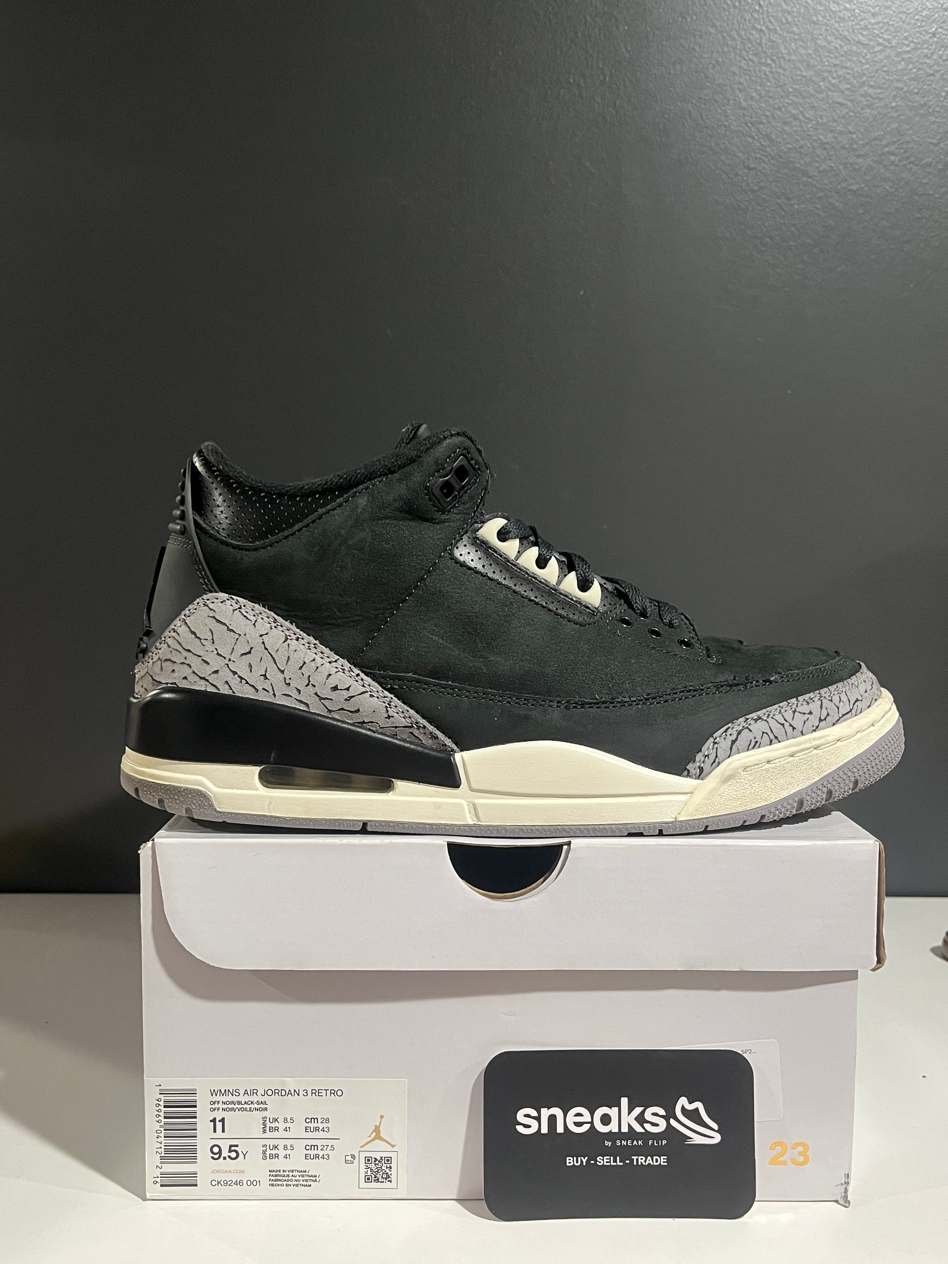 USED Wmns Air Jordan 3 Retro Off Noir CK9246-001 SIZE 9.5Y OG ALL SP25-155